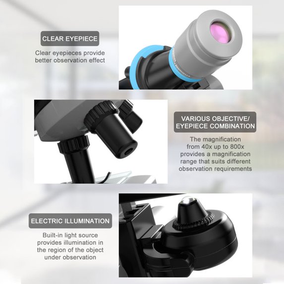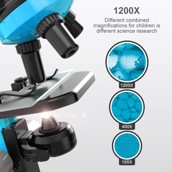 Offers up to 100x–1200x magnification, allowing kids to zoom in and explore microscopic details with incredible clarity.
